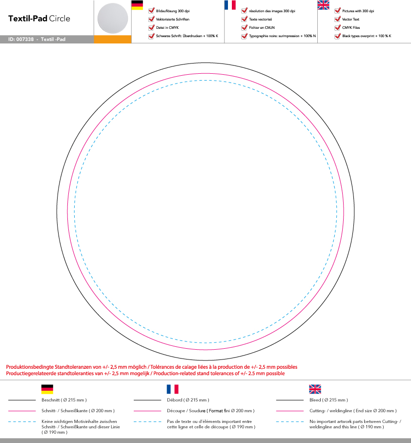 Caution with motifs with frames or content close to the outer edge due to the position tolerances of approx. +/- 1.5 mm