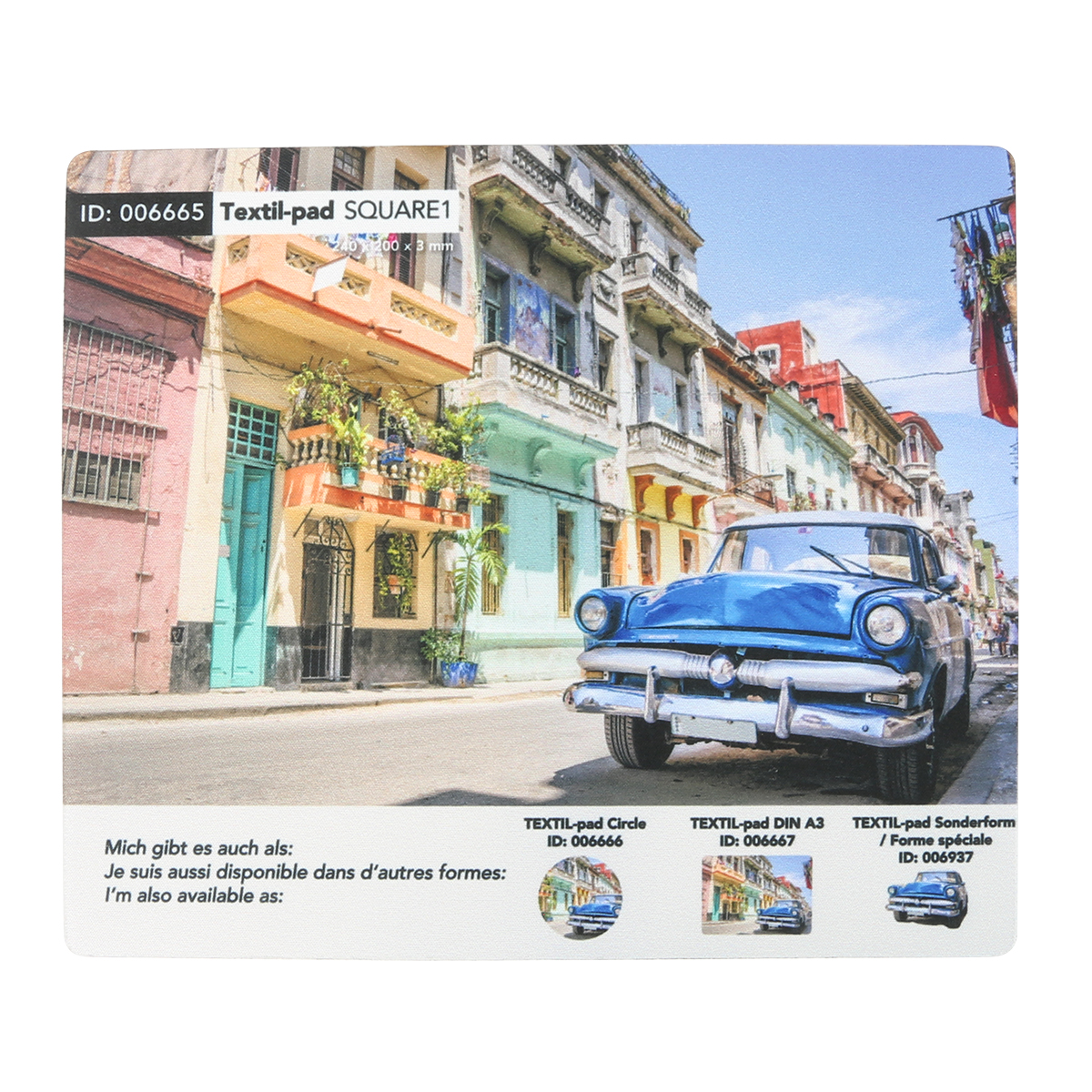Textile sublimation mousepad with 3 mm non-slip underside made of FSC-certified natural rubber and textile surface.